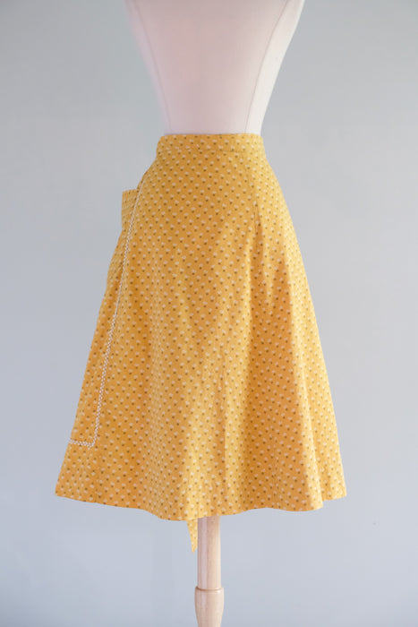Vintage 1940's Saffron Yellow Cotton Wrap Skirt / S