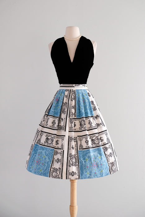 Vintage 1950's One Dollar Bill Cotton Novelty Print Skirt / S