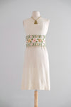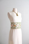 Vintage 1960's Ivory Wool Jersey Shift with Gold Brocade Florals by Minx Modes / XS