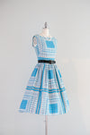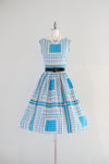 Vintage 1950's Turquoise Blue Bandana Print Cotton Dress by Happy Home / Small