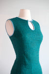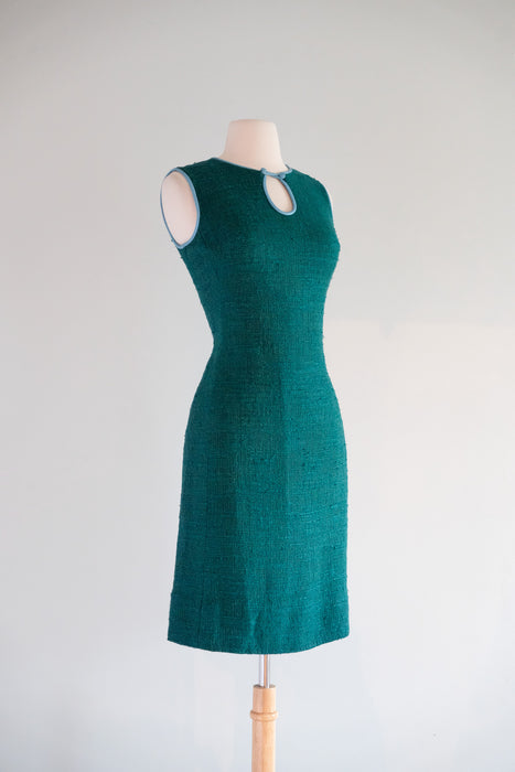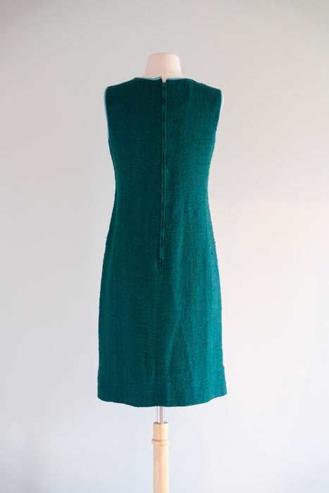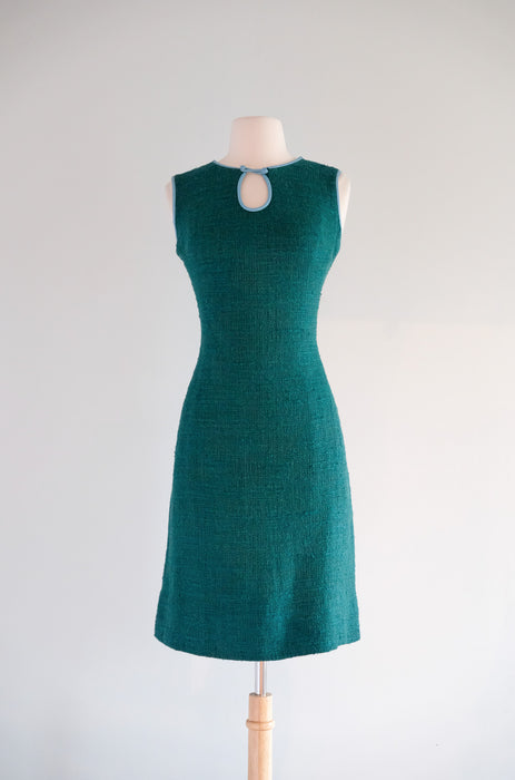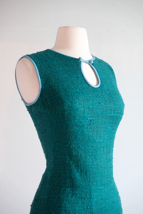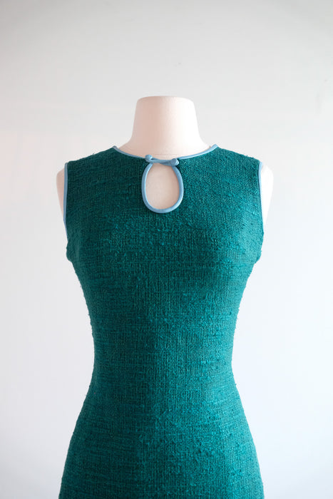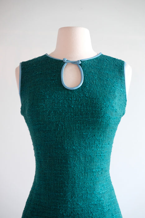 Vintage 1960's Teal Shift Dress With Leather Trim by Youth Guild / M