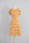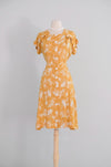 Vintage 1940's Marigold Yellow Floral Swing Dress by Dayton / S