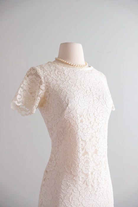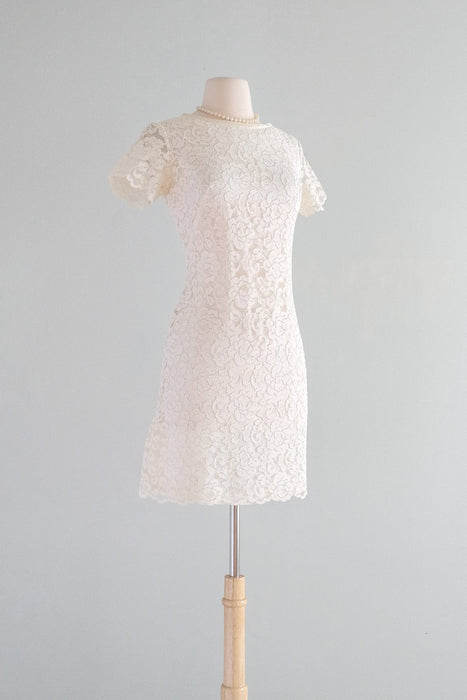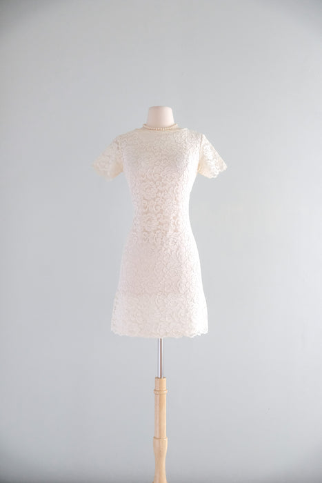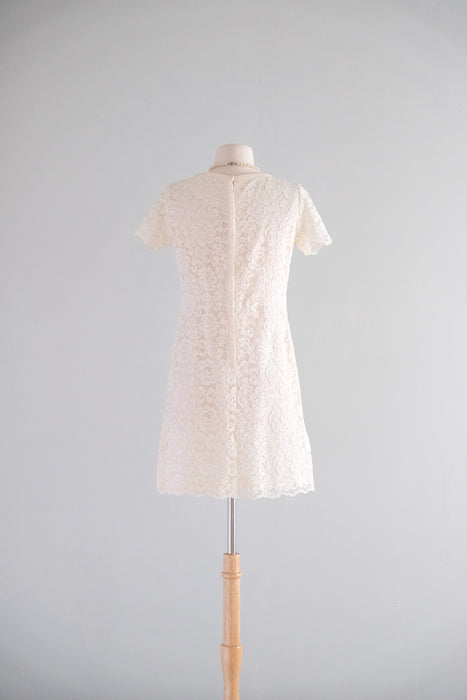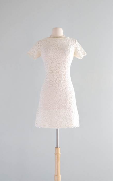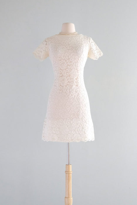 Darling 1960's Ivory Lace Mod Bride Mini Dress / S