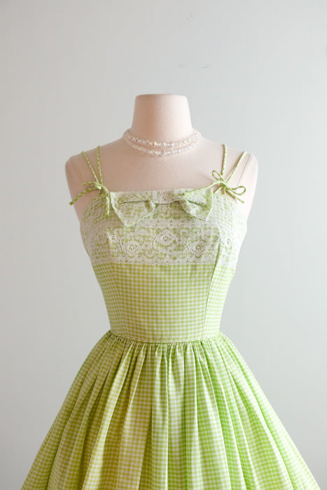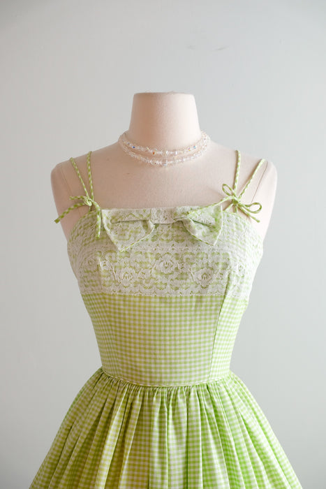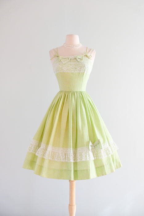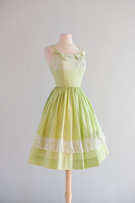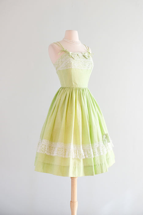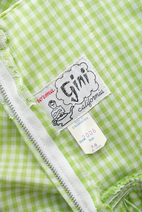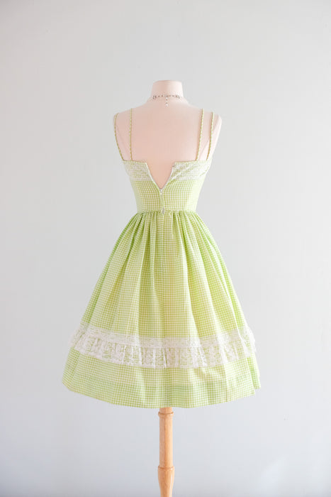 Vintage 1950's Key Lime Gingham Sundress by Norma Gini / XS