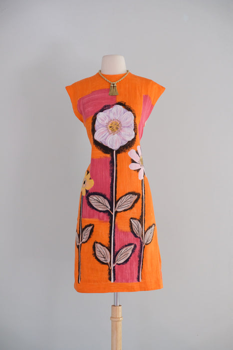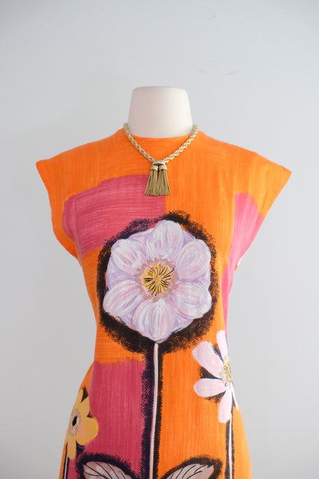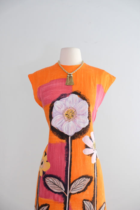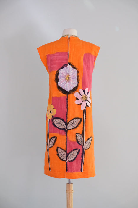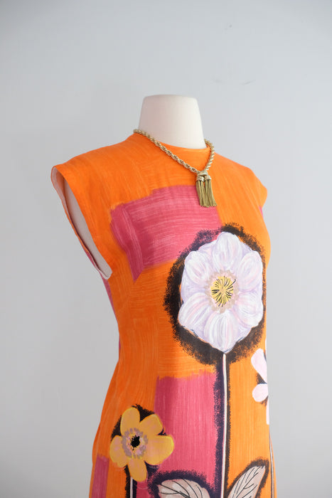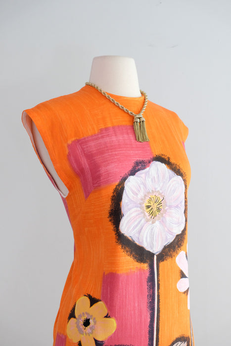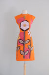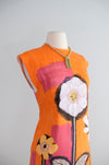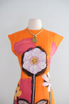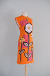 Vintage 1960's Orange & Pink Anemone Art Print Shift Dress / Small