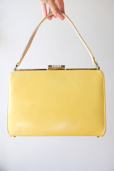 Vintage 1960's Daffodil Yellow Leather Handbag / OS