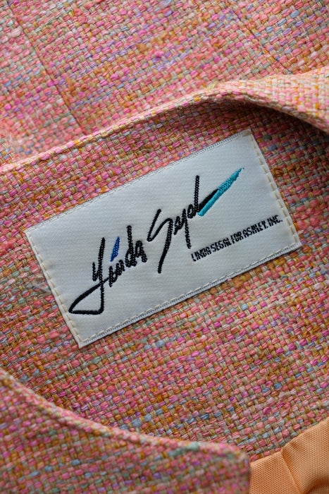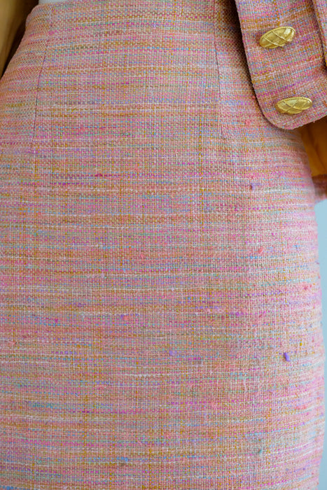 Vintage late 1980's Pastel Rainbow Silk Tweed Suit by Linda Segal / S