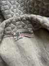 This stunning 1960's metallic silver knit suit by Kimberly Knits features a diamond pattern in silver and ivory on both the jacket and skirt. Crafted from virgin wool and metallic thread, the jacket is accented with sparkling rhinestone buttons down the front. The skirt offers a sleek, slim fit, fastening with a side zipper and waist buttons. Recently professionally cleaned and perfectly preserved, this elegant set is ready to elevate your vintage wardrobe.
