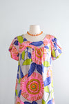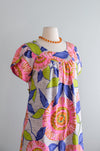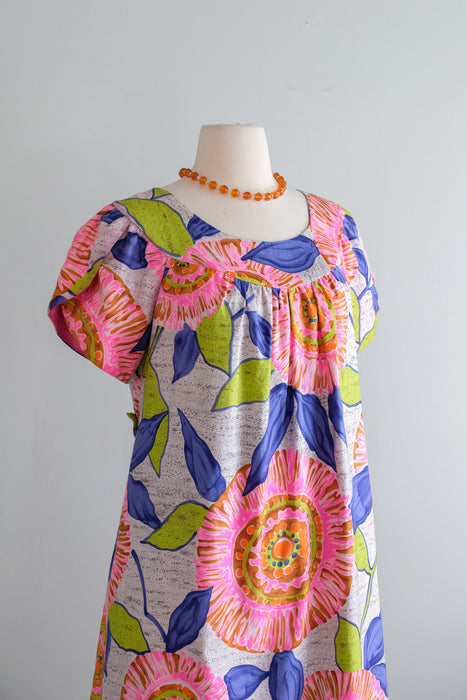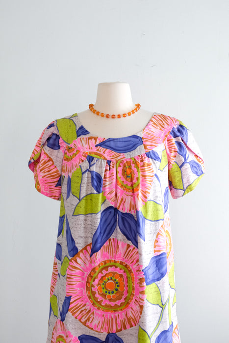 Vintage 1960's Passion Flower Hawaiian Trapeze Dress / M/L
