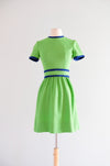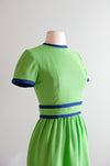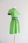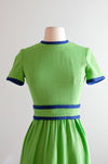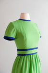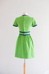 Vintage 1960's Kelly Green & Navy Mod Linen Dress by Lanz / XS