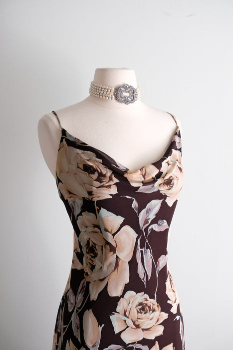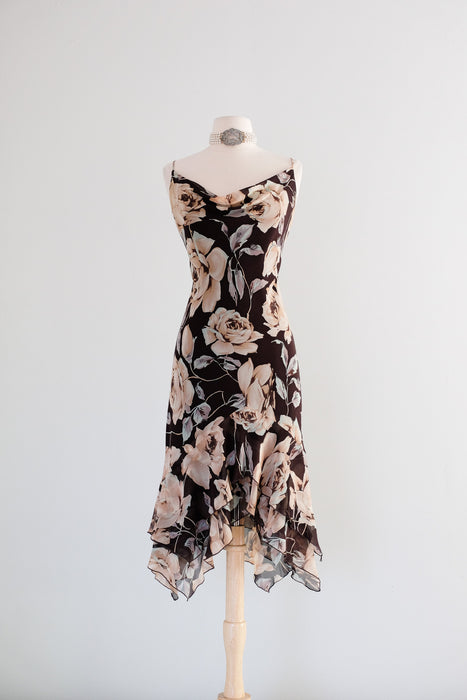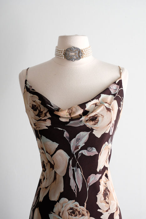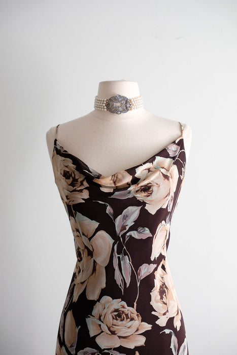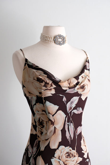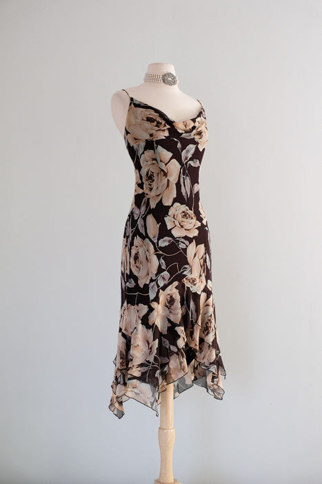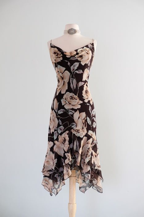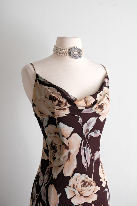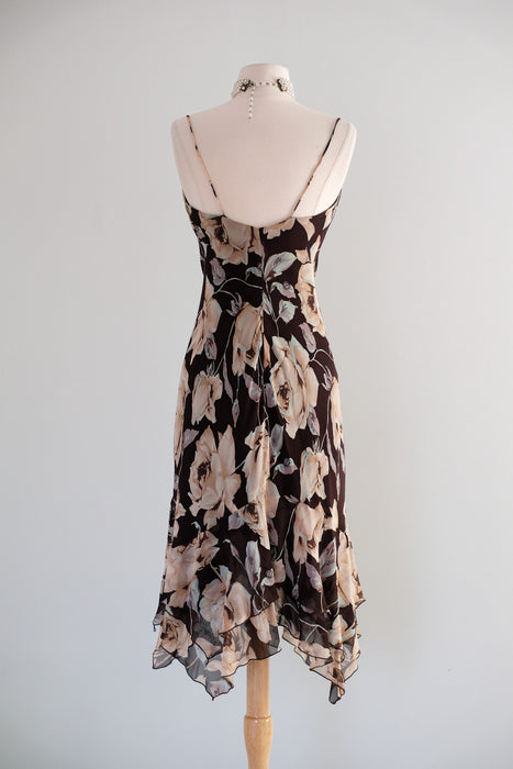 Vintage 1990's Floral Silk Chiffon Bias Cut Party Dress / S