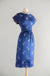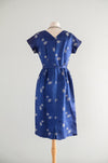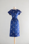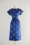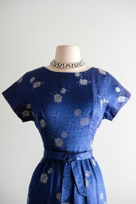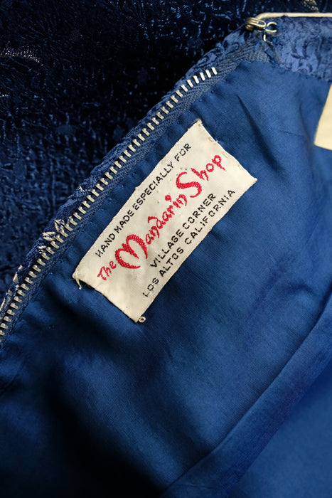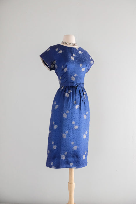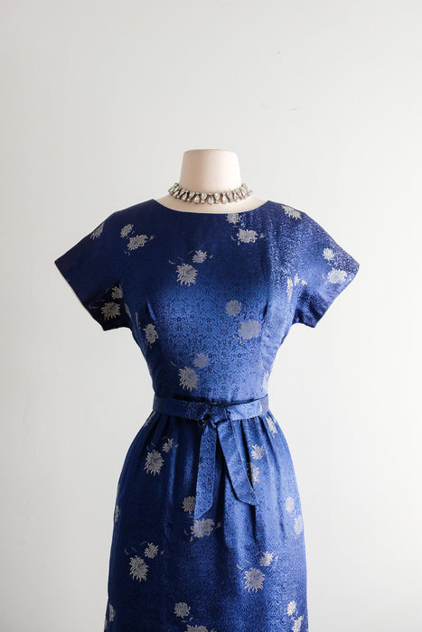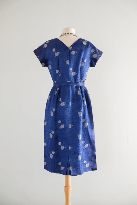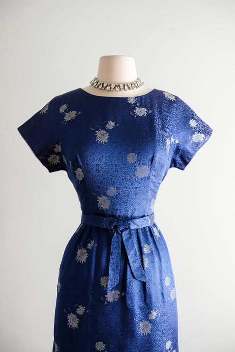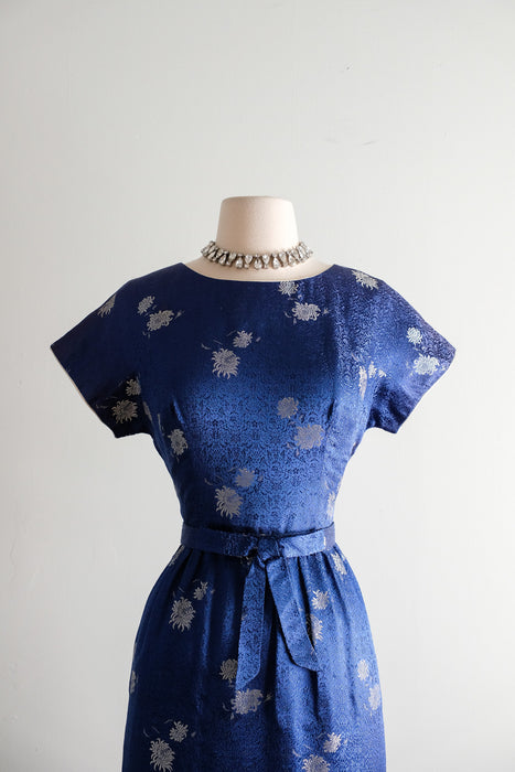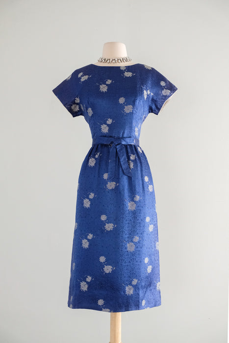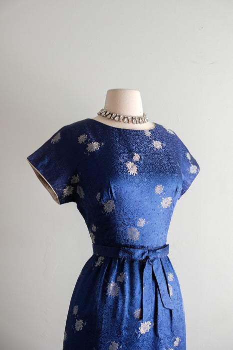 Vintage 1960's Sapphire Brocade Cocktail Dress by The Mandarin Shop / Medium