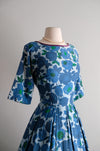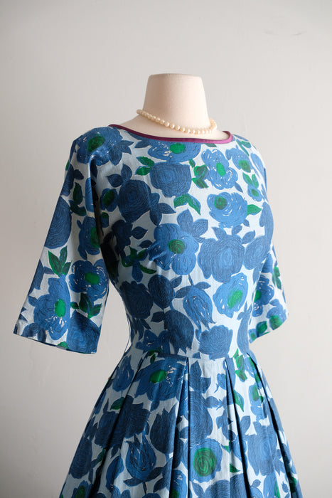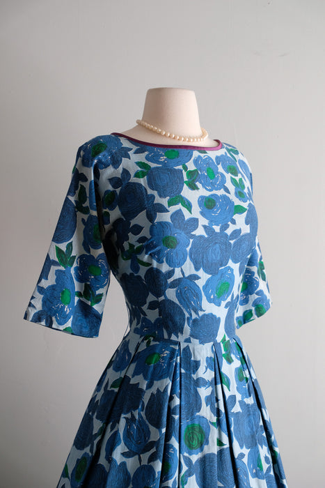 Vintage 1950's Azure Rose Floral Party Dress / M