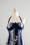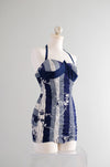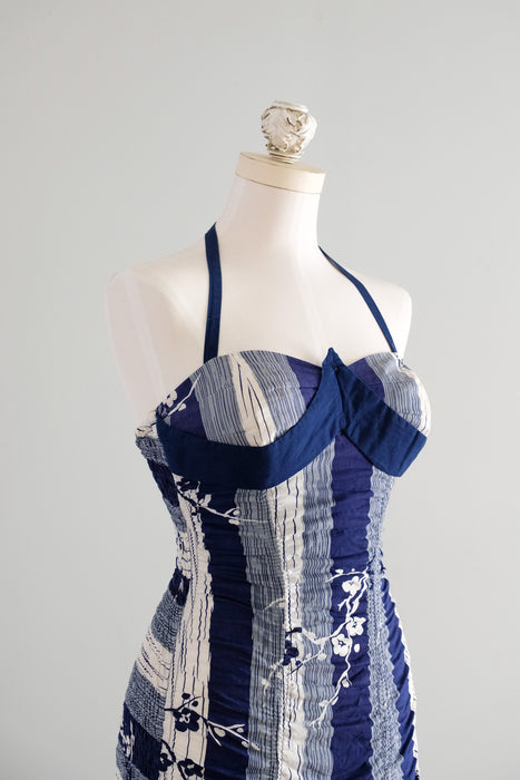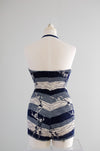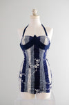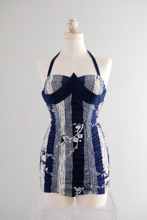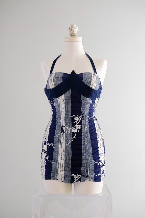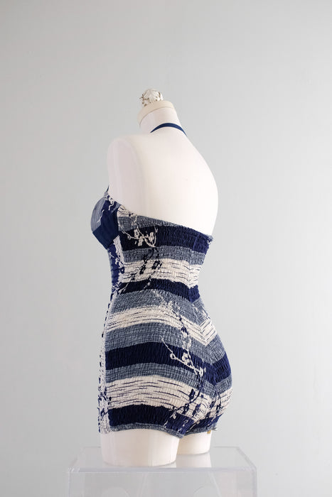 Vintage 1950's Miss Hawaii Navy & White Shirred Cotton Swimsuit / SM