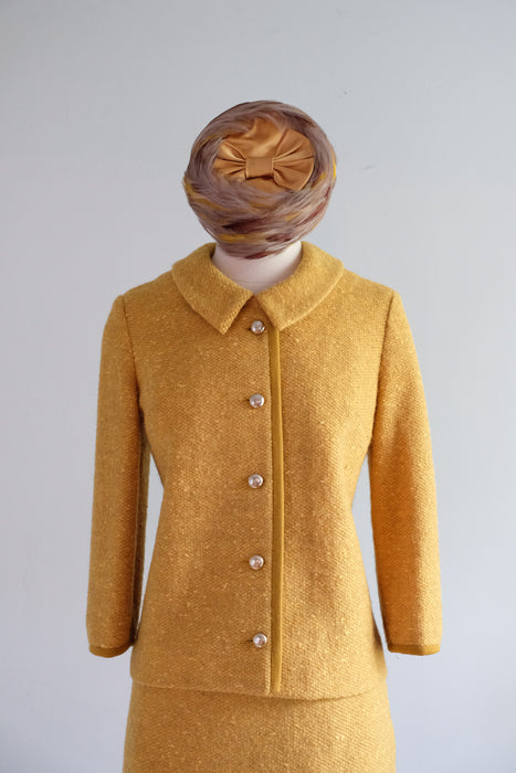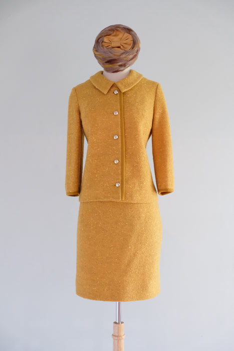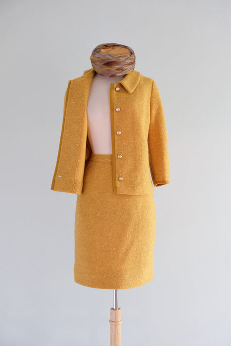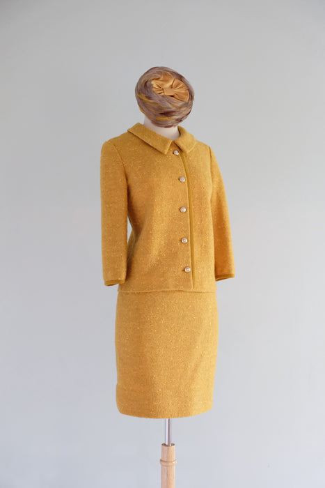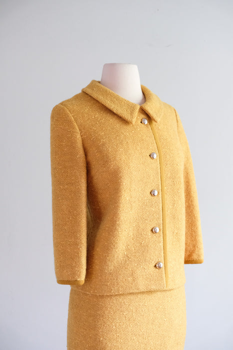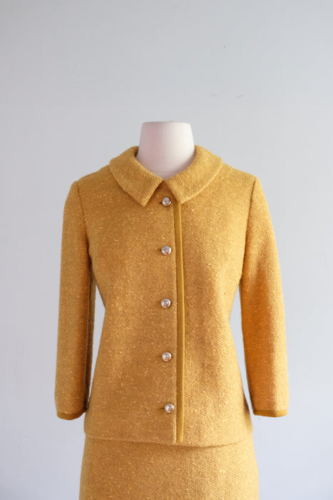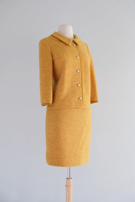 Vintage 1960's Mustard Yellow Ladies Two Piece Suit by Powers / SM