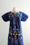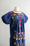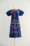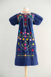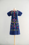Vintage 1970's Colorful Navy Mexican Huipil Style Dress / ML