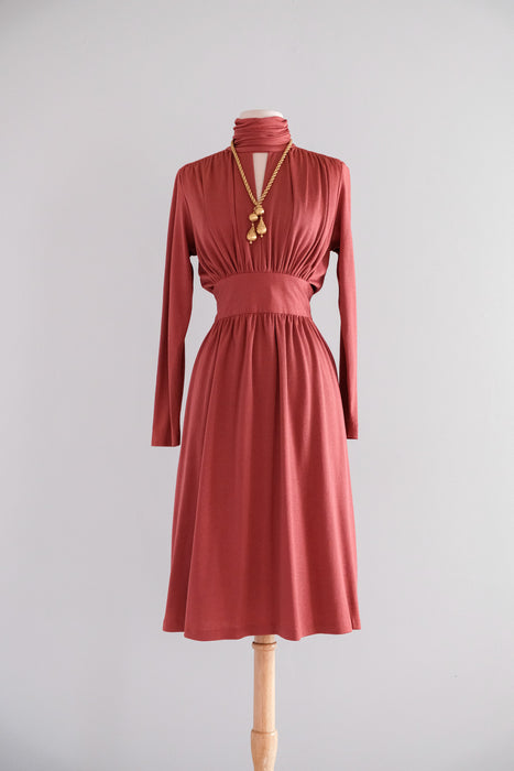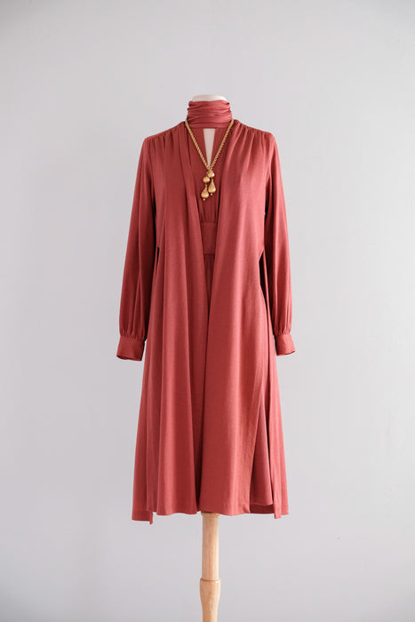 Vintage 1970's Sedona Red Jersey Hooded Ensemble by Joy Stevens / M