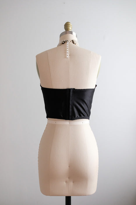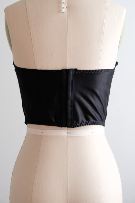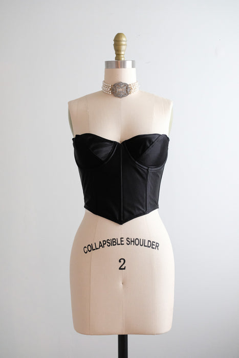 Vintage 1980's Black Nylon Strapless Bustier Top by Dolores / S