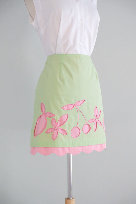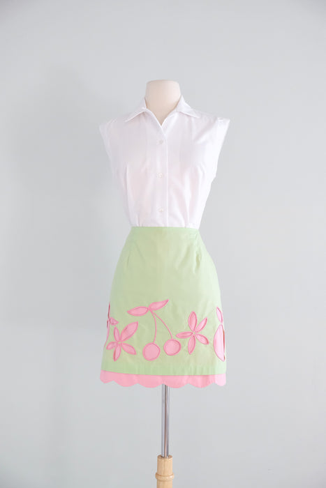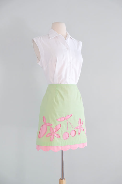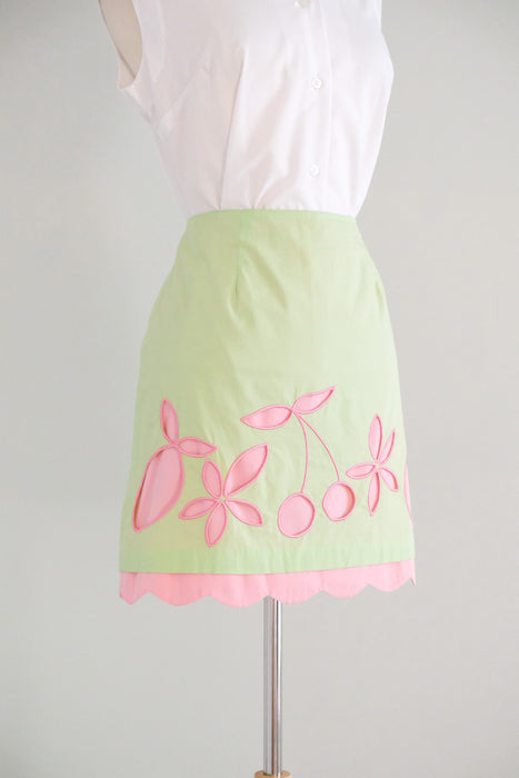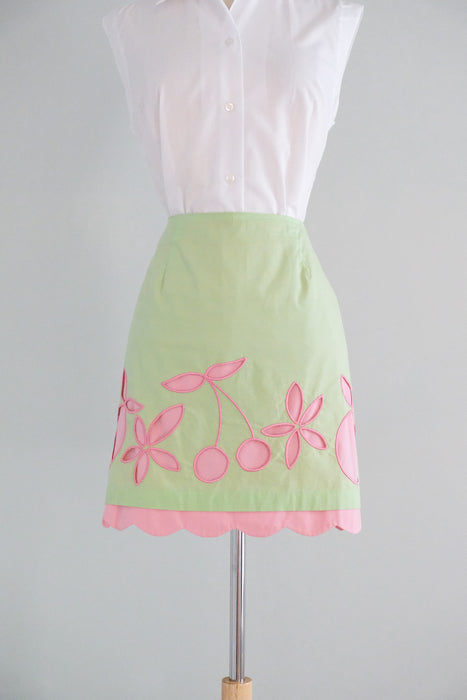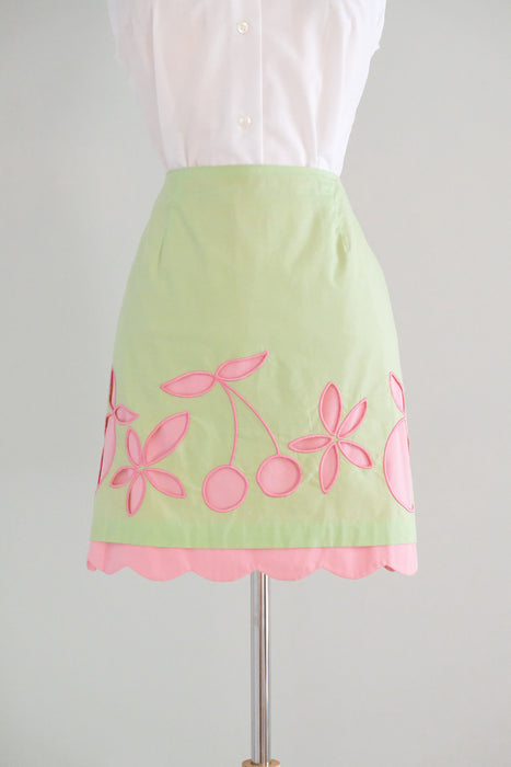 Vintage 1990's Pastel Pink & Green Cherry Skirt by Lilly Pulitzer / M