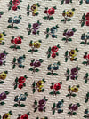 Classic 1950's vintage circle skirt with beautiful rose print. White textured cotton with multi-colored rose floral print. Fitted at the waist with full circle style skirt. Metal zipper up the side and buttons at the waistband. Freshly cleaned and ready to wear! Styled with our 80's does 50's white lace bustier top, sold separately.