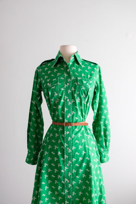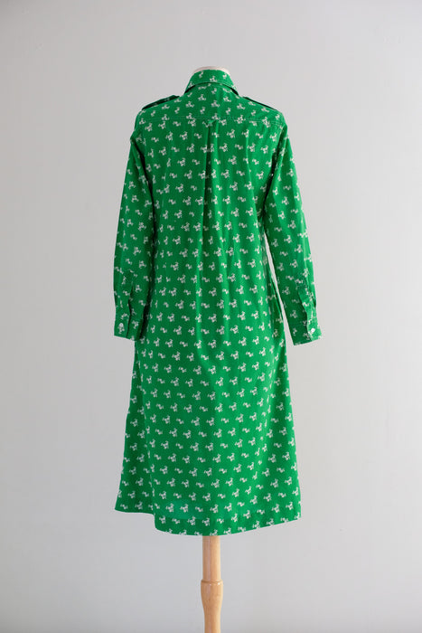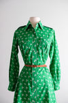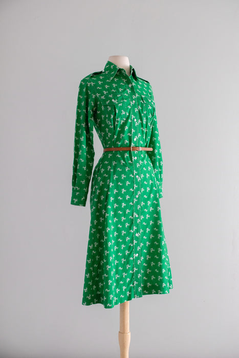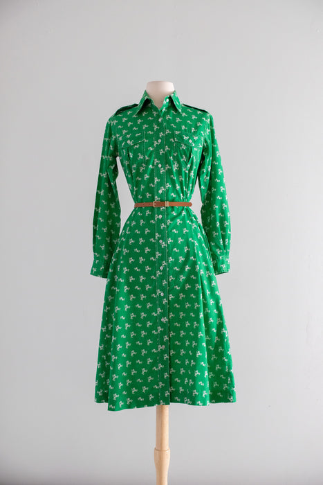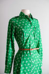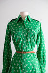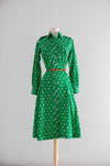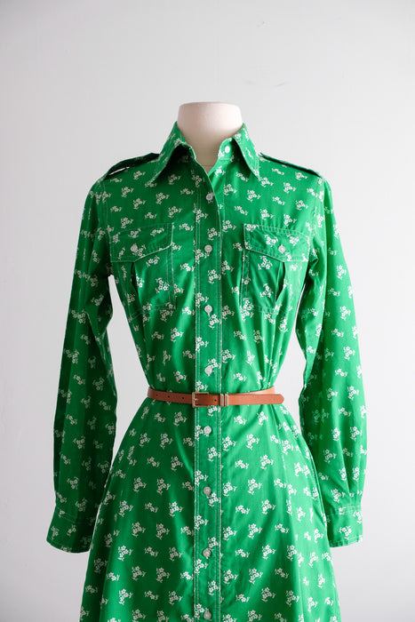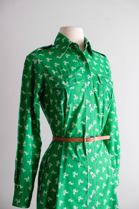 Vintage 1970's Kelly Green & Ivory Floral Shift Dress by Lanz / M