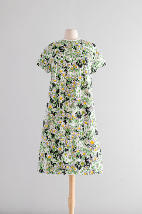 Vintage 1960's Lilly Pulitzer Style Daisy Print Cotton Shift by Vanda / ML