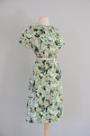 Blooming 1960's daisy printed cotton shift dress by Vanda. The print on this looks just like a Lilly Pulitzer and it was made in Key West! Sweet white daisies printed all over. Comfortable cotton dress with loose fit, short sleeves and a high neckline. Buttons at the chest and zips in the back. Pockets in the skirt. Freshly cleaned and ready to wear!